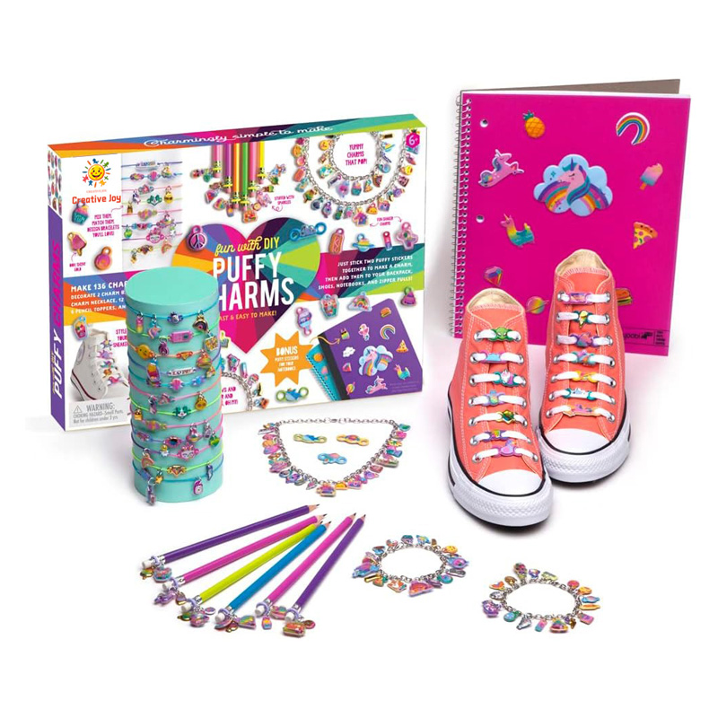 “SO MANY CUTE CHOICES! Just stick 2 puffy stickers together to create your own charms. They come in dozens of trendy designs: cute animals, tasty treats, sparkly stars, and so much more! There are even glitter-filled shakers, gold, & holographic designs for extra sparkle.”