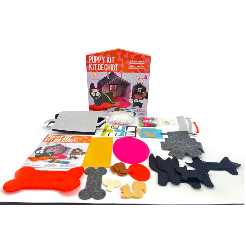 “Includes 19 pc felt, 5 pc paper, 7 pompoms, 1 plastic needle,0 .2 oz (6 g) polyester stuffing, 6 skeins thread totaling 5.3 yds (4.84 m), 2 skeins yarn totaling 3.05 yd (2.78 m), 1 sheet adhesive, instruction manual.”