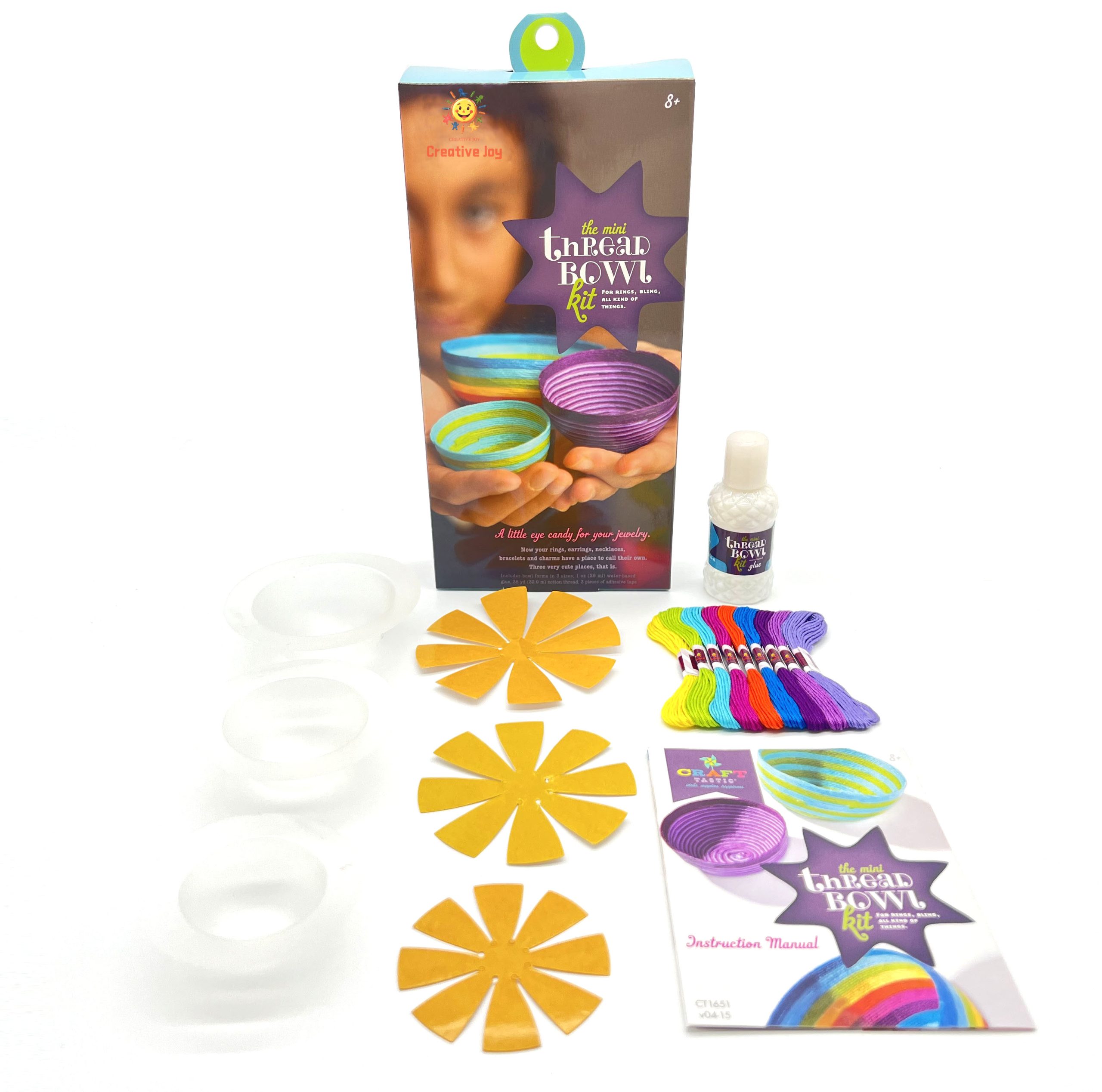 Includes bowl forms in 3 sizes, 1 oz (29 ml) water-based glue, 36 yd (32.9 m) cotton thread, 3 pieces of adhesive tape